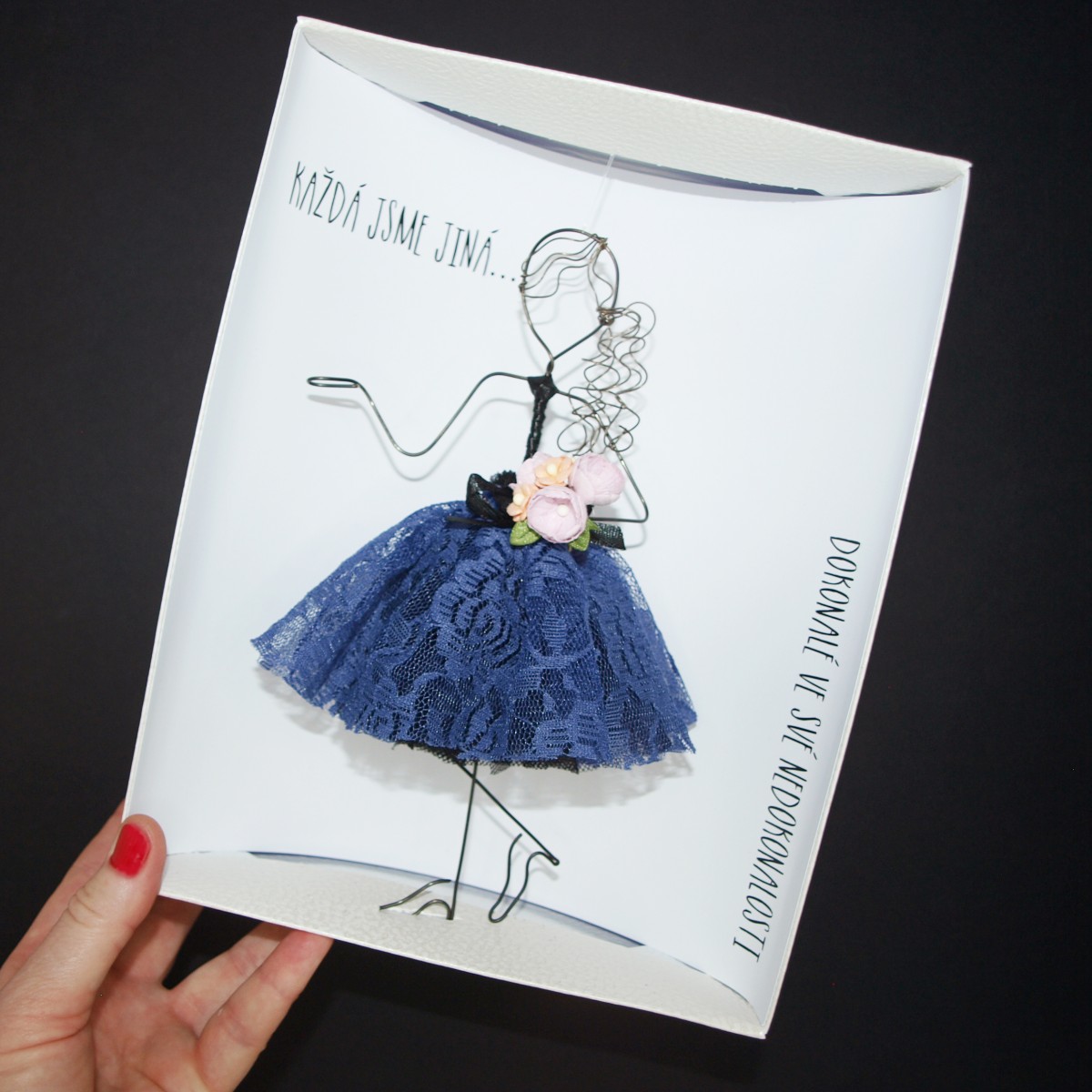 KAŽDÁ JSME JINÁ... DOKONALÉ VE SVÉ NEDOKONALOSTI... přesně o tom to je. Tak jako ručně vytvořená dámička z drátu může působit nedokonale, tak se občas cítí každá z nás. Dámička je vysoká 20 cm, umístěná do dárkové krabici s tímto sloganem.
