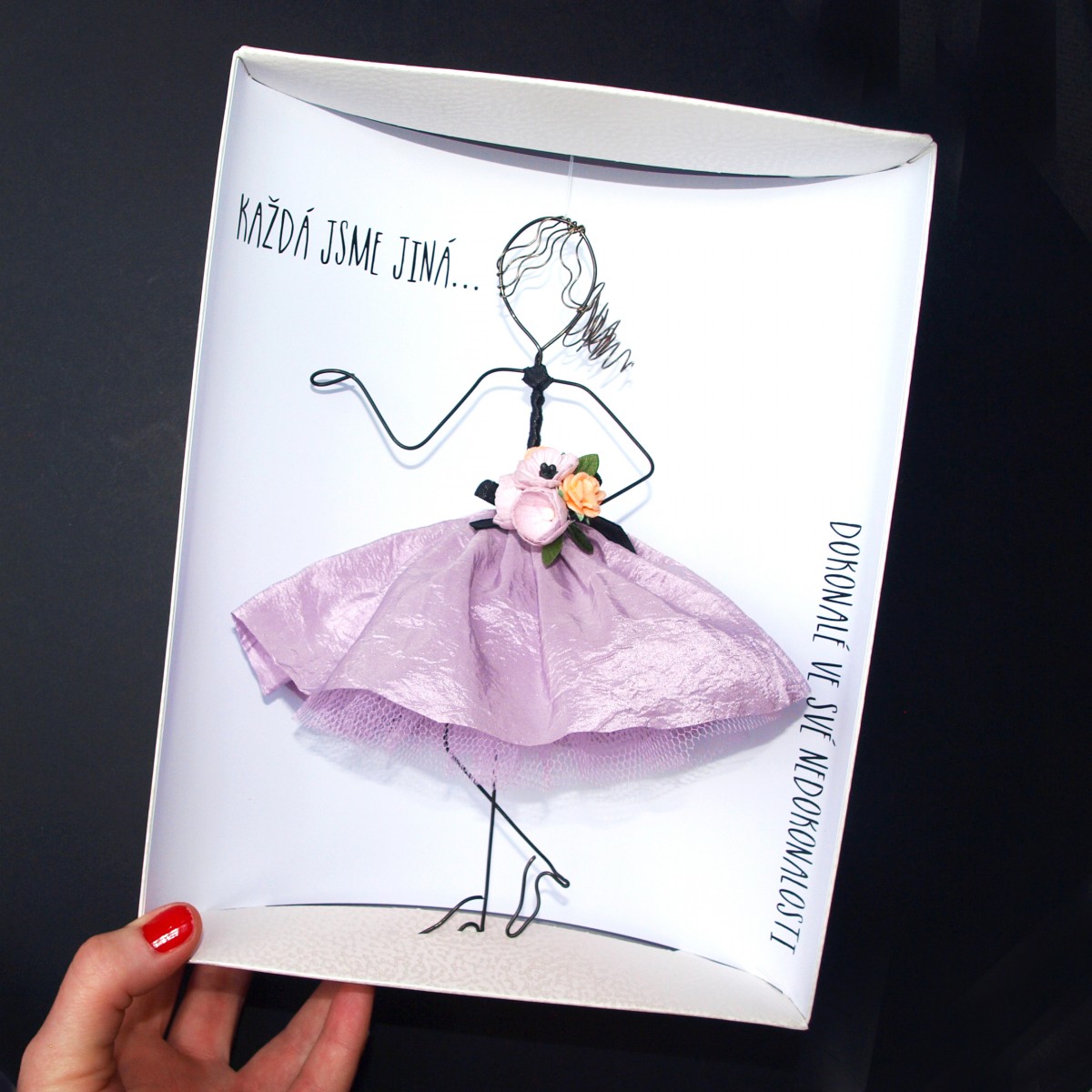 KAŽDÁ JSME JINÁ... DOKONALÉ VE SVÉ NEDOKONALOSTI... přesně o tom to je. Tak jako ručně vytvořená dámička z drátu může působit nedokonale, tak se občas cítí každá z nás. Dámička je vysoká 20 cm, umístěná do dárkové krabici s tímto sloganem.