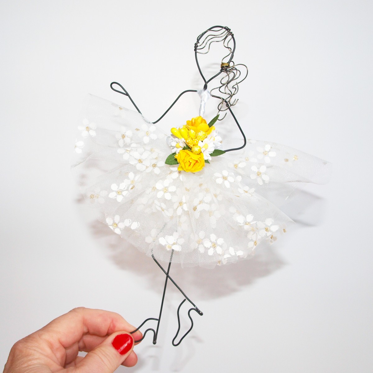 DÁMIČKA Z DRÁTU .... bílo zlatá kytička se žlutou kyticí