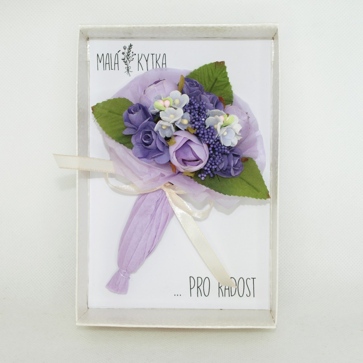 Malá kytka... mini kytička v papírové krabiččce v imitaci bílé kůže, s průhledným uzavíráním. Kytička je vytvořena z čistě přírodních materiálů, převážně z papíru a hedvábí. Je to ideální "maličkost pro radost" k různým příležitostem, ať už pro potěšení kamarádce, mamince, babičce, pro paní doktorku, učitelku, do porodnice, nebo komukoliv, komu chcete poděkovat, potěšit. je to maličkost, která potěší, ale nezavazuje. Dá se také poslat v bublinkové obálce jako psaní, komukoliv, když nemůžete předat osobně. Stačí napsat a my vše zařídíme za vás...
