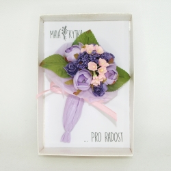 Malá kytka... mini kytička v papírové krabiččce v imitaci bílé kůže, s průhledným uzavíráním. Kytička je vytvořena z čistě přírodních materiálů, převážně z papíru a hedvábí. Je to ideální "maličkost pro radost" k různým příležitostem, ať už pro potěšení kamarádce, mamince, babičce, pro paní doktorku, učitelku, do porodnice, nebo komukoliv, komu chcete poděkovat, potěšit. je to maličkost, která potěší, ale nezavazuje. Dá se také poslat v bublinkové obálce jako psaní, komukoliv, když nemůžete předat osobně. Stačí napsat a my vše zařídíme za vás...