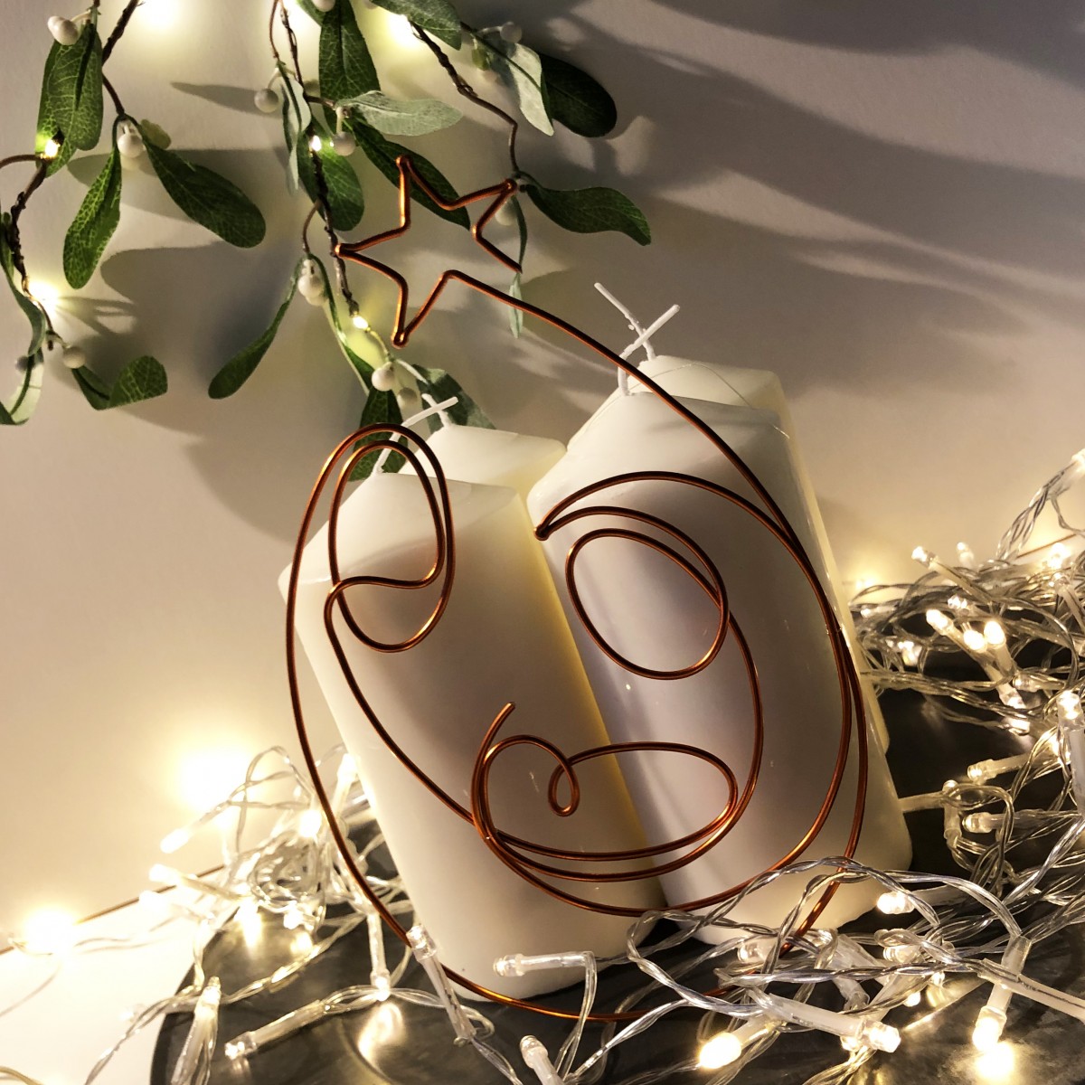 Dekorace je vyrobena z hliníkového drátu v měděné barvě, vhodné jak do interiéru, tak i do venkovních prostor.