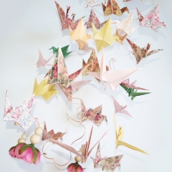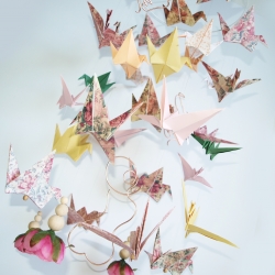 Doplněna kovovými prvky s tématem ženy, zakončené temně starorůžovými pivoňkami.