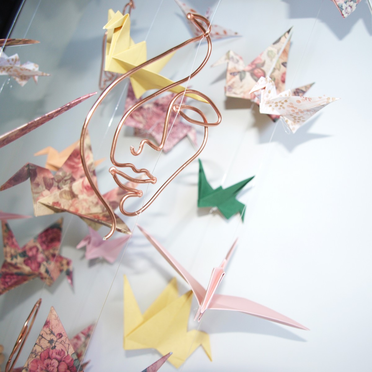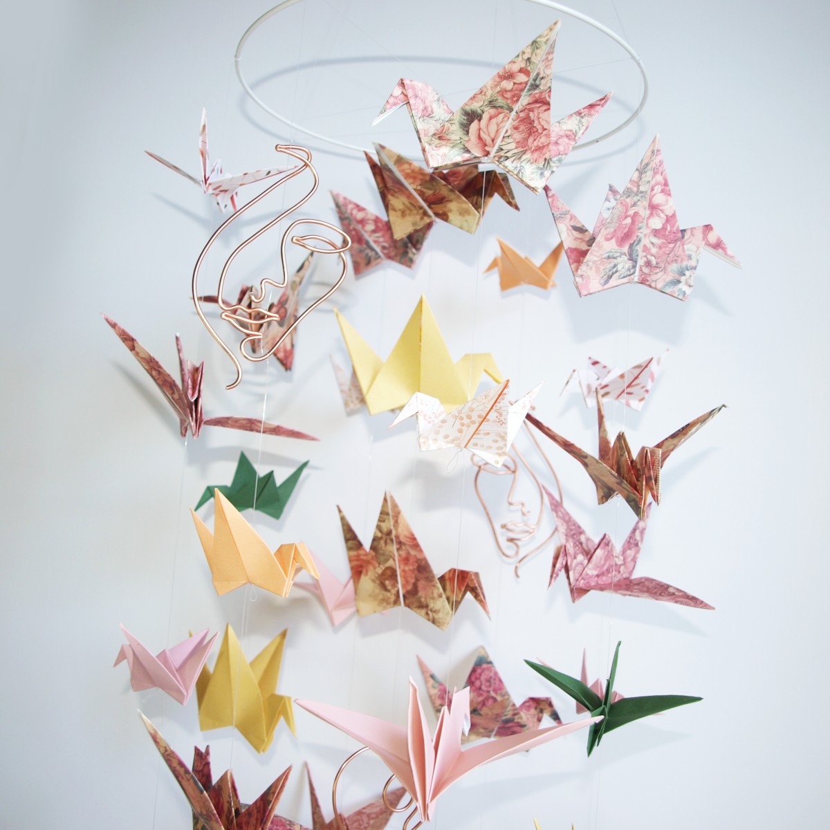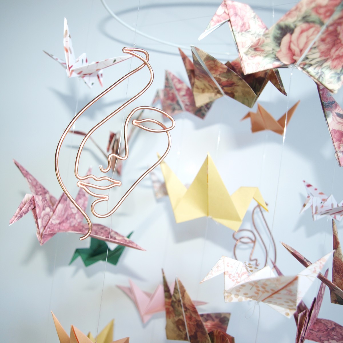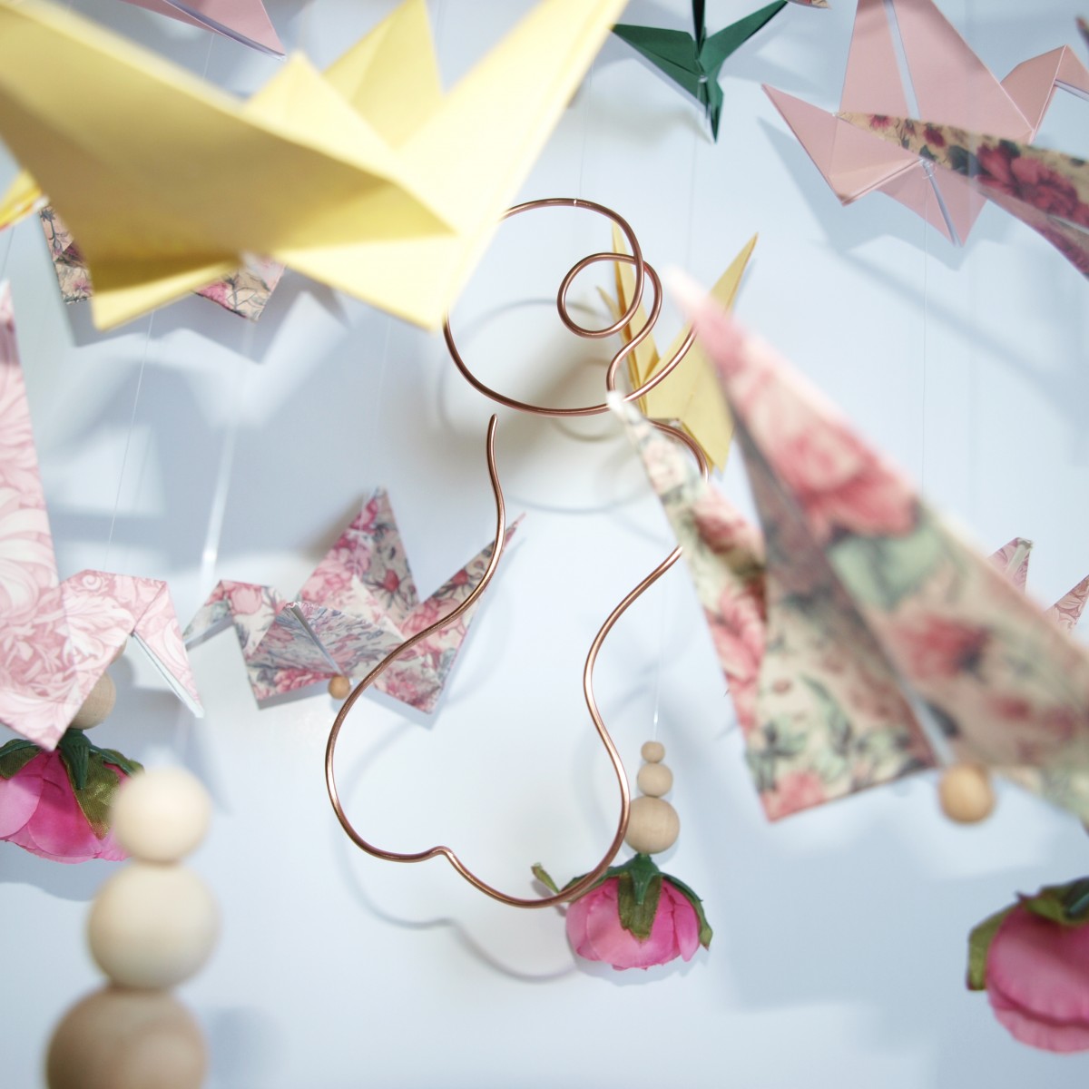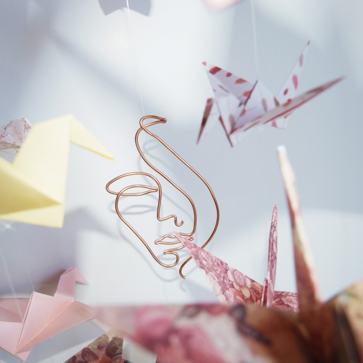 Závěsná dekorace v odstínech starorůžové, meruňkové, lehce žluté a zelené s kovovými prvky ženské tématiky krásně oživí interiér.